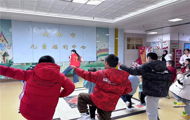 咸阳职业技术学院体育学院红拳薪火社团队走进咸阳市儿童福利院,开展“武暖童心·爱润心田”公益实践活动,用武术传递力量,用陪伴温暖时光。